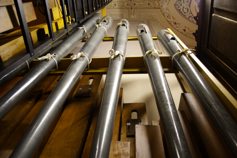 pipes from the Violin Cello and Octave Bass ranks. The back of the